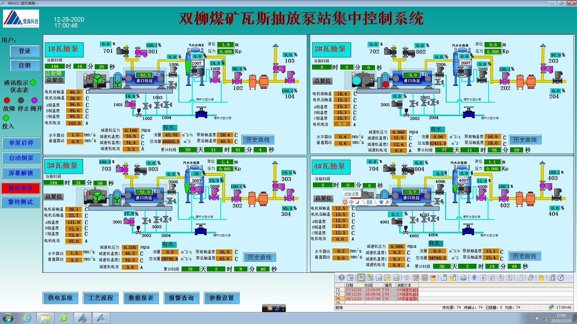 實(shí)現(xiàn)瓦抽站重點(diǎn)設(shè)備遠(yuǎn)程控制、一鍵倒泵、故障自動(dòng)倒泵等功能